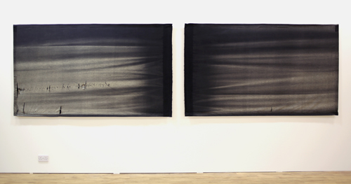 Two (modified) lamp projectors, fabric, thread. ["For a breath of time the silence deepened, a touch of meaning was there – an instant later it was brushed away and forgotten." – Peter Brook, The Empty Space, 1968]